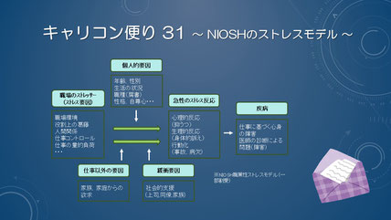 心理支援で覚えておきたいのはNIOSHのストレスモデルです。色々なマイナス・プラス要因が重なって反応として現れます。